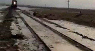 Бурным потоком воды размыло участок железной дороги в Мангистау