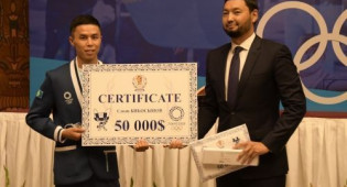 Президент Казахстанской федерации бокса Кенес Ракишев наградил бронзовых призеров Олимпиады Сакена Бибосынова и Камшыбека Кункабаева специальными денежными сертификатами. Герои игр получили по 50 000 долларов США. Личные тренеры боксеров — Мырзагали Айтжанов и Сейтжан Токенов получили от Федераци