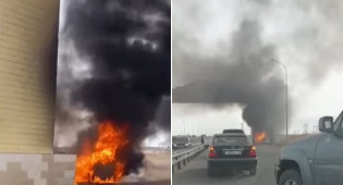 В социальной сети появилось видео возгорания автомобиля в городе Сатпаев, передаёт BaigeNews.kz.