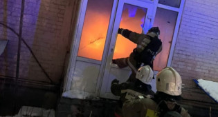 Огнеборцы потуили пожар и спасли двух человек из пожара. Пострадавшим помогают медики.