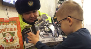 Полицейский Дед Мороз исполнил мечту четырёхлетнего мальчика из детдома