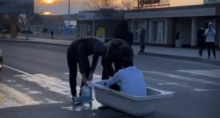 В социальных сетях появилось видео, на котором несколько парней устроили купание в ванне посреди проезжей части, передаёт BaigeNews.kz со ссылкой на Lada.kz.
