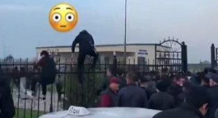 Видео опубликовали в соцсетях. На нем видно, как толпа людей устремилась в здание спеЦОНа. Некоторые перелезали через железный забор, чтобы попасть на терри