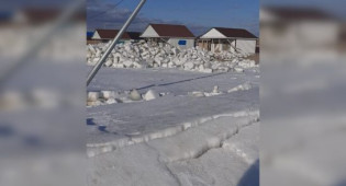 Из-за сильного ветра лед выбросило на берег озера в Кызылординской области, повреждены строения