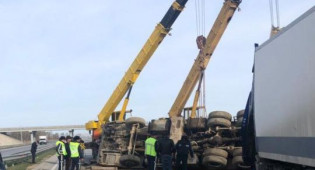 На место аварии выехали полицейские. Они установили, что на 135 километре трассы Шымкент — Самара столкнулись большегрузный кран марки "Рено Магнум" и