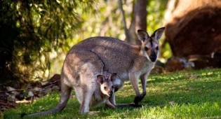 Работники зверинца не могут назвать точную дату рождения малыша, но предполагают, что это произошло в январе. Однако только недавно кенгурёнок стал высовыв
