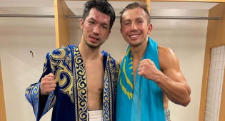 Геннадий Головкин после боя подарил казахский национальный чапан своему сопернику Риоте Мурате, передаёт BaigeNews.kz.