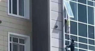 Видео спасения девочки разлетелось по соцсетям. Ребёнок оказался на карнизе на уровне восьмого этажа. Сосед с нижнего этажа, проявив удивительную л