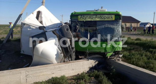 Автобус с пассажирами столкнулся с ГАЗелью в Атырау