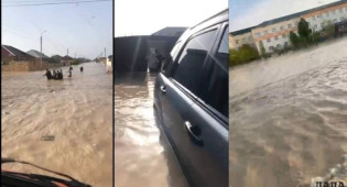 Потоки воды несутся по улицам, смешиваясь с песком. Также стремительно вода залила трассы. Жители Жанаозена публикуют видеокадры с последствиями дождей в