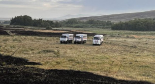 На месте пожара на территории Кувского лесничества в Каркаралинском районе работают 280 человек, 44 единицы техники, два вертолета. Продолжаются сбросы воды авиацией АО "Ка