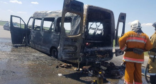 Микроавтобус полностью сгорел на трассе в Шымкенте