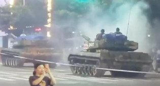 В социальных сетях появилось видео танков, выстроившихся в ряд на улицах, возможно, города Жичжао на востоке Китая. На кадрах из провинции Хэнань видно, как длинная очередь из танков не д