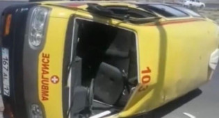 "Скорая" опрокинулась после ДТП в Шымкенте