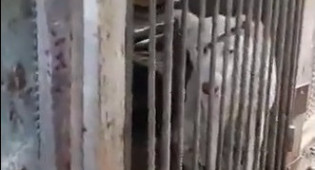 На видео, опубликованном в Facebook, несколько собак находятся в клетках в помещении, которое автор видеоролика называет "бойней