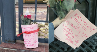 К посольствам Казахстана за рубежом россияне приносят цветы