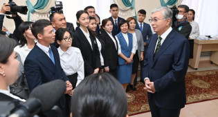 Президент осмотрел выставку, посвященную истории и достижениям учебного заведения, а затем побеседовал с преподавателями и учащимися. В ходе открытой беседы Касым-Жомарт Токаев п