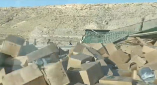 На кадрах видно, что из прицепа опрокинувшейся фуры выпали коробки. Информации о пострадавших пока нет.