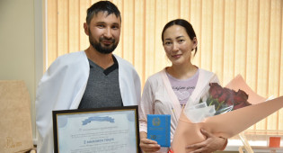 Аким области Серик Шапкенов побывал в городском родильном доме, поздравил семью со значимым событием и вручил им свидетельство о рождении о ребёнка.