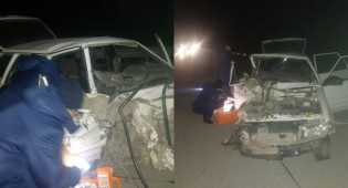 Сообщается, что на автодороге Астана – Павлодар водитель Lada превысил скорость и въехал в КамАЗ. Водитель большегруза как раз стоял у задней части своего авто и проводил ремонтные
