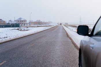 По гололёду на летней резине ездила машина "скорой" в Жанаозене