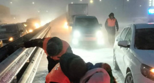Колонну из 3000 авто сопровождают дорожники по трассе Астана-Темиртау