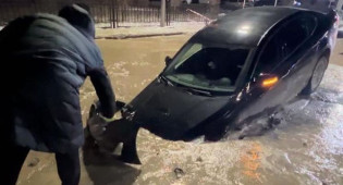 Видео с места происшествия появилось в местном Instagram-паблике. Выяснилось, что в образовавшуюся посреди дороги яму попала ещё одна машина.