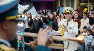 В международном аэропорту столицы и в торгово-развлекательном центре "Хан Шатыр" музыканты Центрального военного оркестра Национального военно-патриотического центра Вооруженных сил и военнослужащие роты почетного караула выступили с праздничной концертной программой, передаёт BaigeNews.kz.