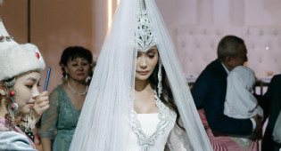 36-летняя невеста была в свадебном платье в национальном стиле.