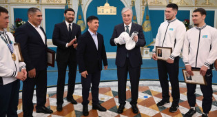 Президент Казахстана Касым-Жомарт Токаев принял победителей чемпионата мира по боксу в Ташкенте Санжара Ташкенбая, Махмуда Сабырхана, Асланбека Шымбергенова, Нурбека Оралбая, серебряного призёра Дулата Бекбауова, а также членов и тренеров сборной, передаёт BaigeNews.kz со ссылкой на Акорду.