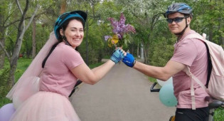 Необычную свадьбу на велосипедах сыграли в Петропавловске