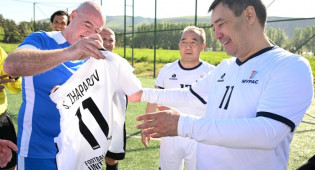 Президент Кыргызстана и глава ФИФА сыграли в футбол в Бишкеке