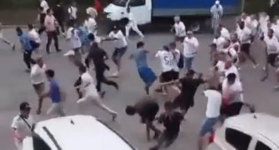 Фанаты футбольных клубов "Ордабасы" и "Легия" устроили массовую драку. Видео потасо