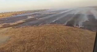 Камыш горит в Атырауской области третьи сутки: спасатели сбросили уже 200 тонн воды
