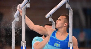 Казахстанский атлет занял первое место в финальных соревнованиях на перекладине, показав результат 14,800. На втором месте располо