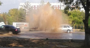 Фонтан из прорвавшегося трубопровода залил дорогу в Экибастузе