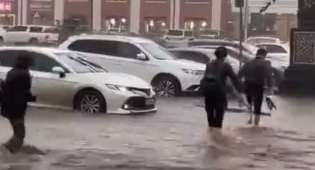 Улицы Караганды превратились в реки после непродолжительного, но сильного дождя. На центральных проспектах машины буквально плывут, передаёт BaigeNews.kz.