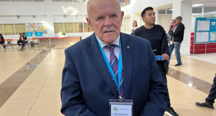 На участок госсоветник прибыл одним из первых. Свой голос он отдал на участке, расположенном в здании Национальной библиотеки РК.
