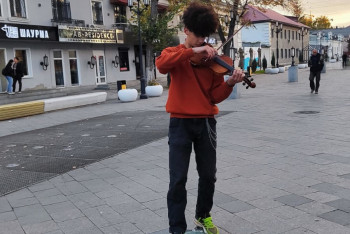 Юный казахстанец катается на скейте и одновременно играет на скрипке