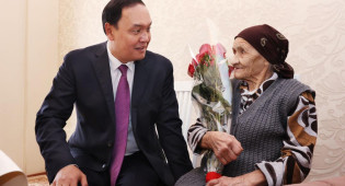 С Международным женским днём поздравил 100-летнюю жительницу Жамбылской области Галиябану Музаферову аким региона Ербол Карашукеев, передаёт BaigeNews.kz.