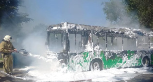 "В селе Байсерке Алматинской области произошло загорание общественного транспорта. Жертв и пострадавших нет. Причина пожара устанавливается. МЧС призывает граждан быть осторожным