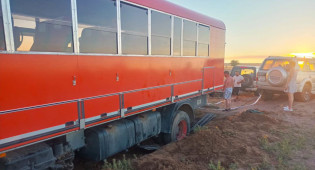 Автобус с британцами в Конаеве погряз в песке: спасатели пришли на помощь