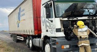 На 552 километре трассы "Алматы-Ташкент" произошло загорание моторного отсека и кабины грузовой автомашины.