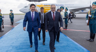 Ухнаагийна Хурэлсуха в столичном аэропорту встретил заместитель премьер-министра Казахстана Галымжан Койшыбаев, передаёт BaigeNews.