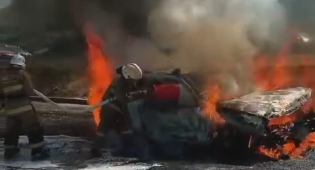 Пламя внезапно вспыхнуло утром и подняло огромный шлейф дыма, который быстро ра