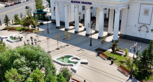 Перед театром "Жастар" установили новый фонтанный комплекс, выполненный в форме дельфинов.