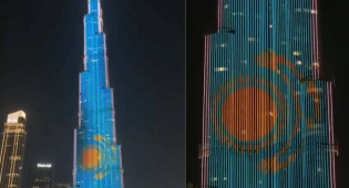 Самое высокое здание планеты, легендарный Бурдж-Халифа, вновь превратилось в гигантский символ дружбы — на его фасаде вспыхнули голубой и золотой цвета флага Казахстана, передает BAQ.KZ. 828-метровый небоскрёб осветился под звуки гимна Казахстана, а видео впечатляющего шоу появилось на странице Конс