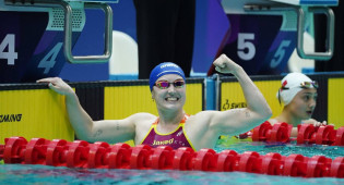 Сподаренко поднялась на первую ступень пьедестала почета, одержав уверенную победу на дистанции 100 метров баттерфляем. Она финишировала с ре