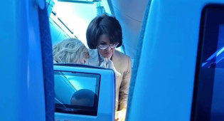 На кадрах видно, как она оказывает медицинскую помощь пассажиру в самолёте, которому стало плохо. В сети возникли дискуссии: от благод