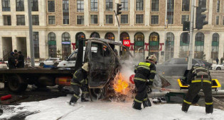Эвакуатор загорелся на улице Тыныбаева в Астане